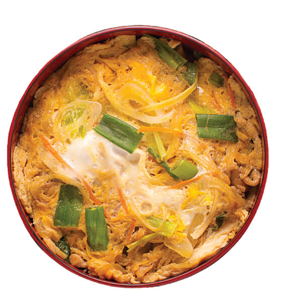 CHICKEN AND VEGETABLES COOKED WITH EGG, SERVED ON TOP PF STEAMED RICE