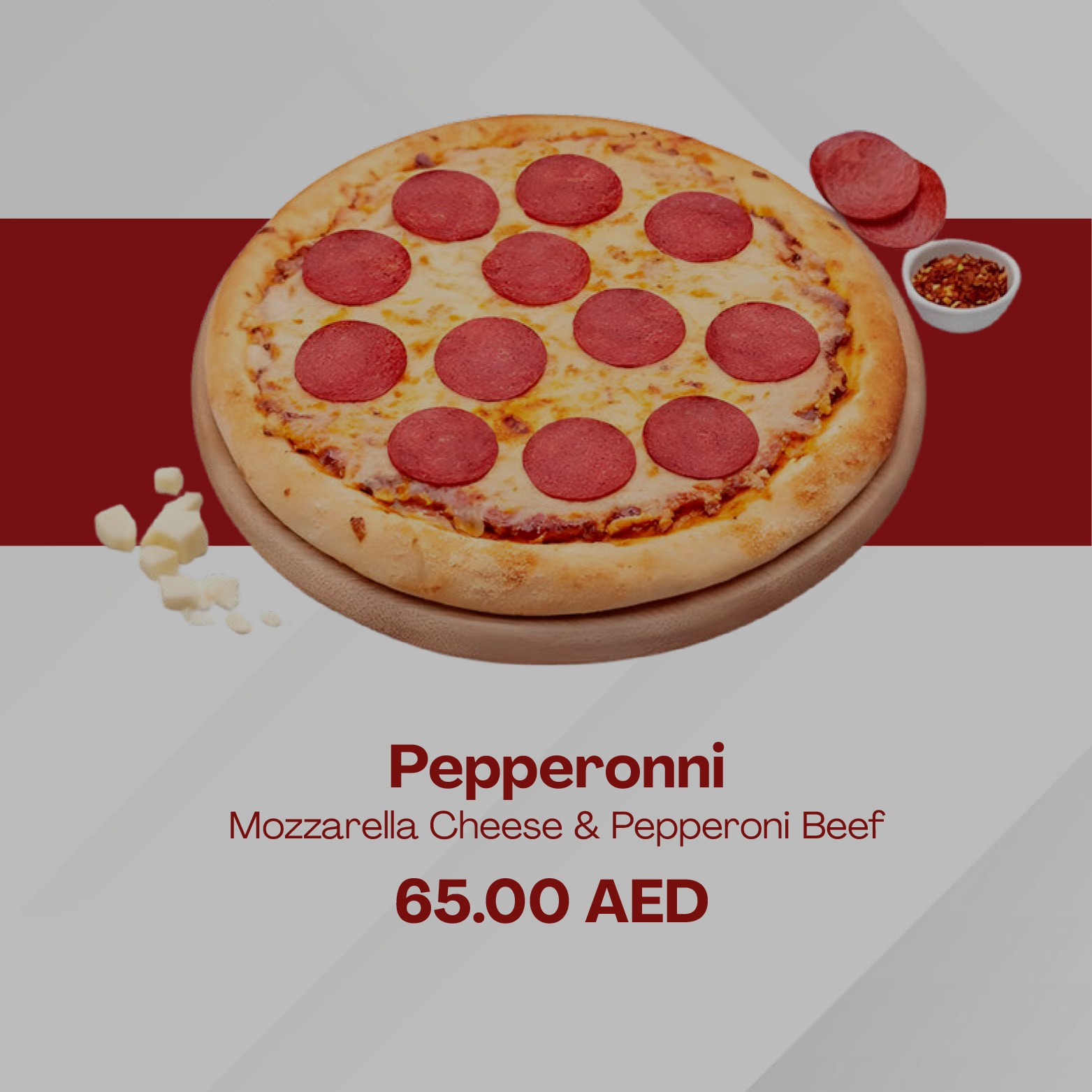 TOMATO SAUCE, MOZZARELLA CHEESE & PEPPERONI BEEF.